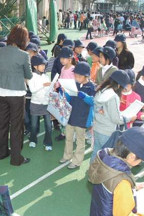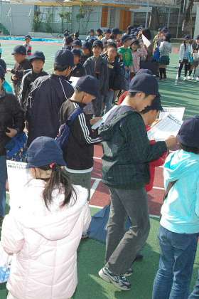 4月6日、始業式の日。朝から子どもたちが元気に登校してきました。新3年生と5年生はクラス替えがあるため、始業式に先立って旧担任が校庭で新しいクラスわけ表を配りました。受け取った子どもたちは食い入るように自分の名前を探しているのが印象的でした。これから2年間、一緒のクラスでよろしく。