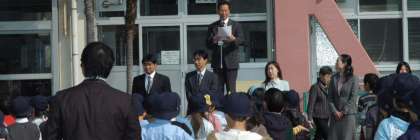 つづいて転任してきた職員紹介と担任発表です。子どもたちはこの瞬間がたまらないようで、担任を発表するごとにどよめきがわき起こりました。転入生の紹介も行い、最後は生活の注意で始業式が終了しました。3・4・5年生はこの後下校しましたが、2年生と6年生は入学式に備えて居残りです。さあ次は入学式です。