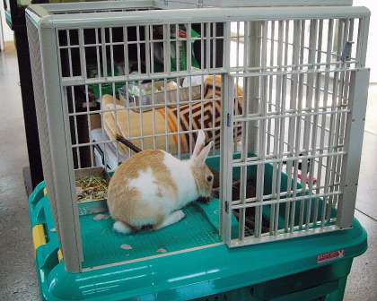 12日、ウサギのラッキーが新居に入って玄関ホールに戻ってきました。今まで以上にかわいがってくださいね。新居には、ウサギの性質を考慮して、下の部分に巣穴のような部屋があります。環境委員会の子どもたちが、月曜日からさっそく世話をしてくれています。