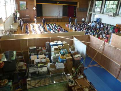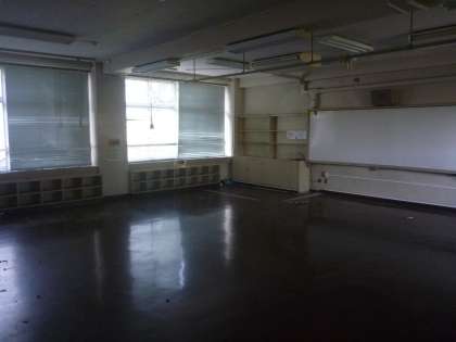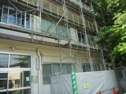 学校の西側の内装工事の準備が始まりました。パソコンルームや日本語教室、音楽室、相談室、体育倉庫などの中身は全て体育館、理科室、図工室などに移動しました。また、外側にも足場が組み立てられました。