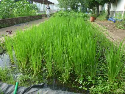 八幡ファームの田んぼの稲は順調に生育しています。緑も濃いし、高さも充分伸びてきました。