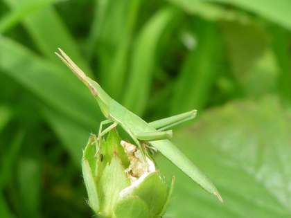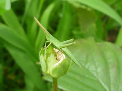 八幡ファームにはたくさんの昆虫がやってきます。バッタの種類もいろいろ見られます。その中でも一番多くみられるのが、ショウリョウバッタかオンブバッタ。