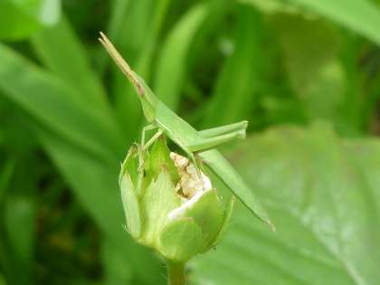 ショウリョウバッタはイネ科の植物を食べます。オンブバッタは野菜の葉っぱなどを食べます。どちらも畑の植物にはあまり好ましくはないのですが、クモやトカゲの餌としては貴重な昆虫です。自然のサイクルの中では大切な役割を果たしています。