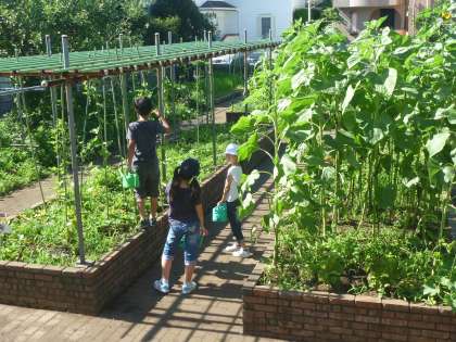 ヒョウタンはもうすぐ上の枠に届きます。今年はたくさんのヒョウタンができるといいですね。課題は夏の水やり。みんなの分が育つといいですね。