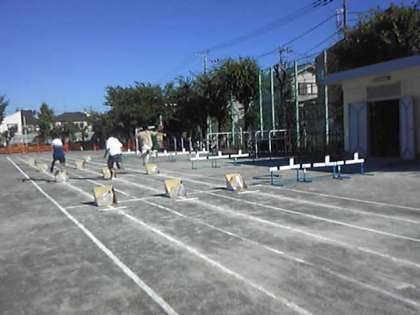 八ブロック体育実技研修です。暑い日差しの中長縄やリレー、八ードル走等研修しました。水分補給をしながら研修しました。