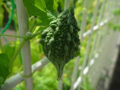 八幡ファームの入り口にある3年生のツルレイシに実がなりました。いわゆるゴーヤです。これが拡大するとなかなか可愛い。食べても美味しいのですが、沖縄と違ってあまり大きくはなりません。そろそろ食べてみたいと思いませんか。3年生の保護者の皆さん、いかがですか。