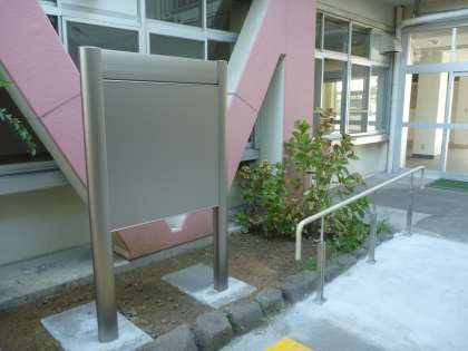 改修工事がほぼ終わり、正門前の段差がなくなり、スロープになりました。また、内装工事により、学校の西側の各教室の壁や床、天井、室内の付属物等が全て新しくなりました。東側は来年になります。