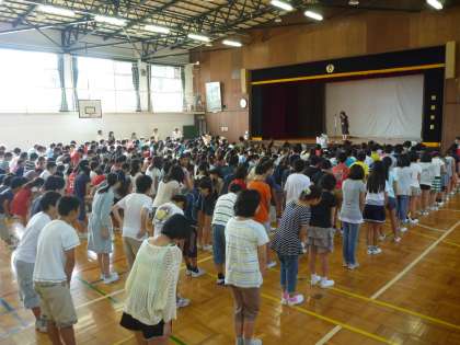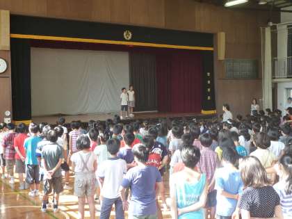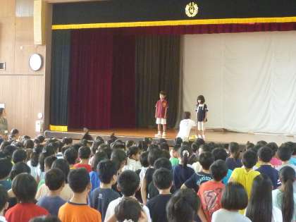 今日から2学期が始まりました。始業式では、校長先生のお話の後、児童代表の言葉、転入生の紹介などをしっかり聞いていました。