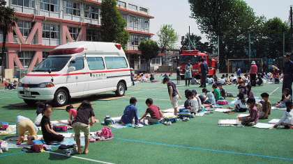 5月1日(金)、9時から校庭で1・2・3年生が参加して、「はたらく消防写生会」を行いました。これは、毎年玉川消防署、奥沢分署のご協力をいただき実施しているものです。消防ポンプ車と救急車、2台の車両が校庭にそろい、子供たちはそれぞれ気に入った方をスケッチします。1年生はクレパスで、2・3年は絵の具で彩色しました。