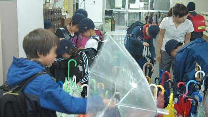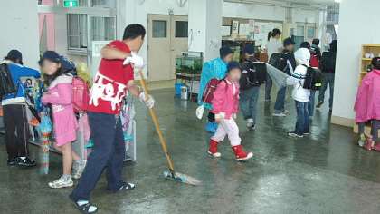 5月8日朝は、雷まで鳴り響く土砂降りの雨となりました。職員が昇降口で出迎え、登校してきた子どもたちをすぐに校舎内に誘導しました。昇降口も雨にぬれて滑りやすいので主事が何度もモップがけをして対応しました。長靴やレインコートなど子どもたちの備えがしっかりしていたので、心配していたほどの影響も出ずにスムーズに授業を始められました。ご家庭のご協力に感謝します。(校長:千葉)
