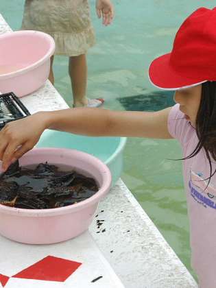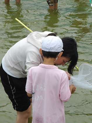 つづき〜 ところが、ヤゴが見当たりません。昨年はプール改修があったので全滅でしたが、例年はもう少しいるのですが・・・。それでも小さなムシがたくさんいて、一生懸命さがしては捕まえていました。