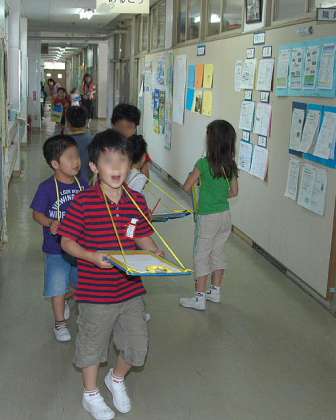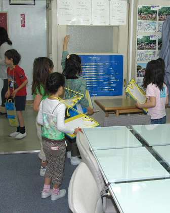 14日(木)、1・2校時に1・2年生が一緒に学校探検をしました。学校のいろいろな教室をまわって、気がついたことをメモしたり、図を描いたりしました。一生懸命な姿がかわいいですね。部屋に入るときも礼儀正しくあいさつをして要件を言うなど、きちんとできていました。