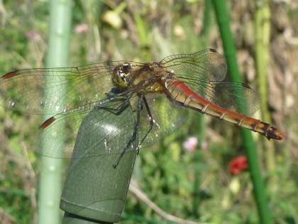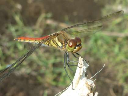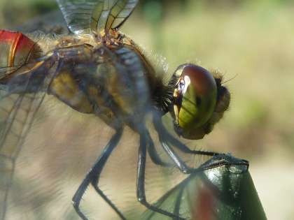 美しい赤とんぼ。でも生態ははっきりしないんだそうですね。目の前にカメラを持って行って、撮影しましたが、悠然と前を見続けていました。