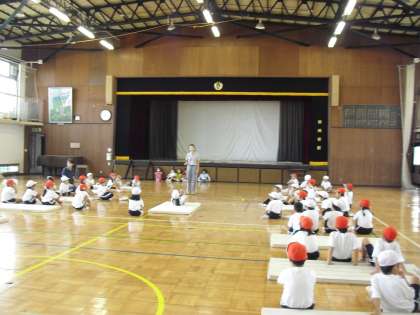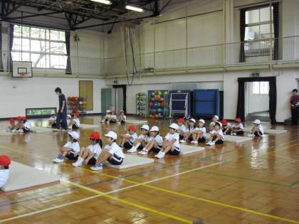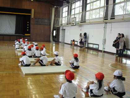 今日の学校公開の中で、1年生がマット運動の後転の練習をしました。自分の体をコントロールすることはとても大切な事です。回転する体験は、そう多くはありませんので、学校は貴重な練習の場になっています。