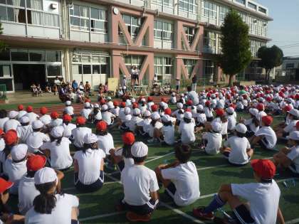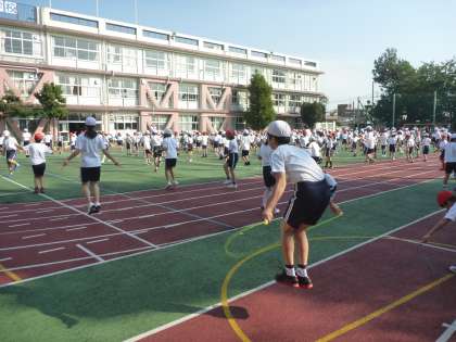 今朝の体育朝会は、運動委員会の子どもたちの見本を見ながら短縄の練習をしました。運動委員会は、さすがに練習しただけあって、上手に跳んでくれました。また、その後、3分間、それぞれの目当ての種目を頑張って練習していました。毎日、縄跳びカードの各種目に挑戦してほしいものです。