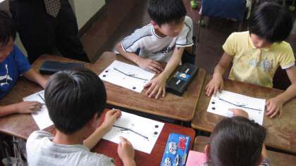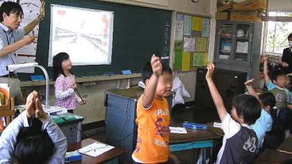 つづき〜 2組は、「かげのむきはどうして変わるのだろう」という問題に、子どもたちが調べた結果を図に表したものを重ね合わせて考えました。本校としてははじめて2クラス同時に行った研究授業でした。どちらの学級でも、子どもたちが本当に一生懸命考え、すすんで発言する姿が見られました。