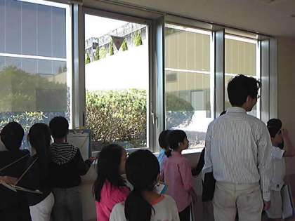 6階では屋上緑化をしてあり、窓からスカイツリーや世田谷美術館の赤い屋根も見えました。ごみグレーンやごみバンカは窓ごしによく見えました。30メートル下のごみをクレーンが運ぶ様子は迫力ありました。