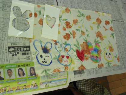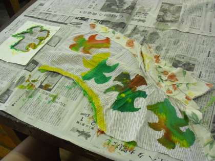 布に描いてみよう・・・世田谷美術館の方々の指導で