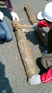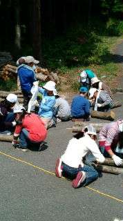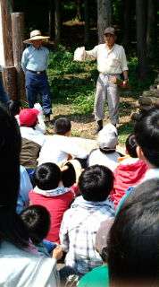 農業体験です。今日は椎茸の駒うち作業です。はじめに指導員さんにあいさつして、作業開始。
