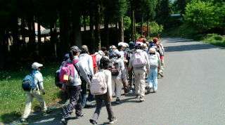 ヒロイド原ハイキング出発です。ビレジの環境プログラムで、川場の自然についてガイドしてもらいながらのハイキングです。