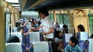 三好PAで休憩。今出発しました。バス内でおやつタイムです。