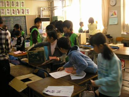 4年生は1組がセンチュリー21クイズ、2組はポリスゲームのお店を開きました。センチュリー21クイズは、10問のクイズを上級者向けから初級者向けまで3つのコースから自分に合ったコースを選択!何問正解できたかを競います。ポリスゲームは7人の犯人を見つけ出すゲームです。校内に隠れた指名手配犯をヒントを手がかりに探し出しました。