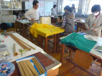 土曜日、学芸会の小道具や衣装を作るために保護者や児童、学校関係者が集まり作業をしました。衣装以外にもトラの耳やライオンのタテガミなども工夫して作成していました。ご参加の皆さん、ありがとうございました。