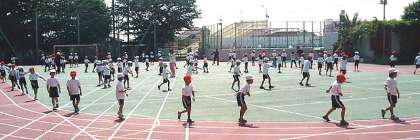 1・2年生の「八幡音頭」の練習風景です。一生懸命踊っている姿がステキですね。当日は、1・2年生が一度踊ったあとに、会場の皆さんにも輪にはいっていただいて、もう一度踊ります。遠慮なくご参加ください。