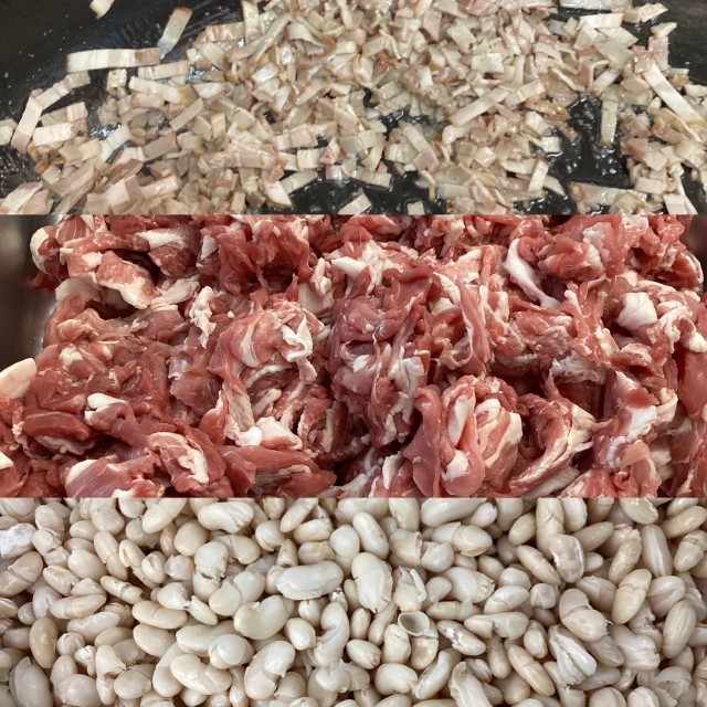 ※写真3枚目は、赤いなかまの豚肉、ベーコン、白いんげん豆です。
