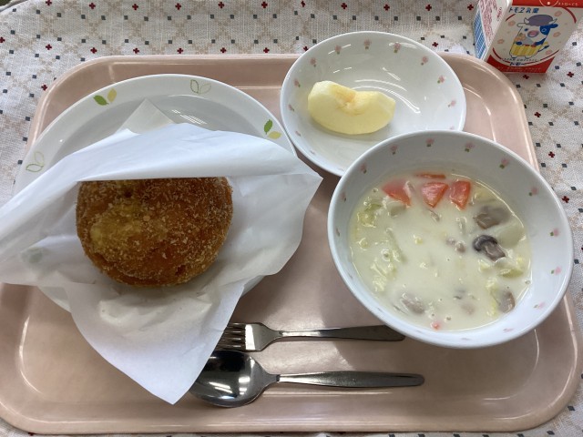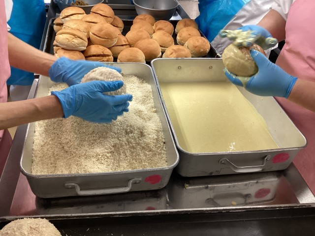 ※写真2枚目は、パンにキーマカレーをはさみ衣をつけているところです。