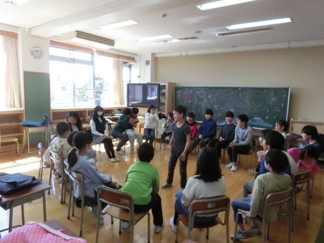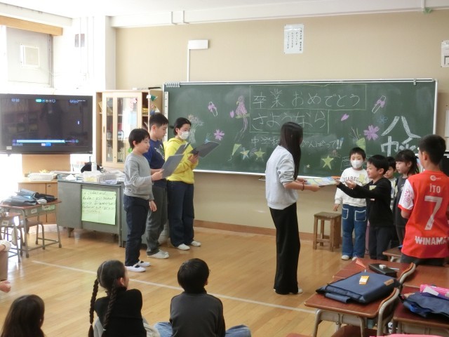 「6年生を送る会」を行いました。八幡小の「6年生を送る会」は、たて割り班「八幡っ子」のグループごとに行います。各グループで一年間を振り返りながら、6年生への感謝の会が開かれました。進行は、これから八幡小のリーダーとなる5年生でした。みんなで一緒に遊んだり6年生に感謝の気持ちを伝えたり温かい気持ちがあふれる会でした。