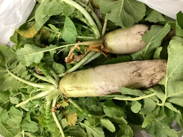 今日のみそ汁には八幡ファームで収穫した大根を入れました。