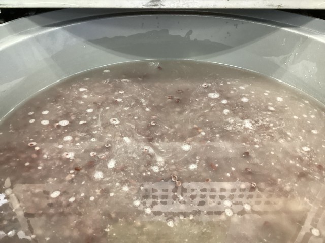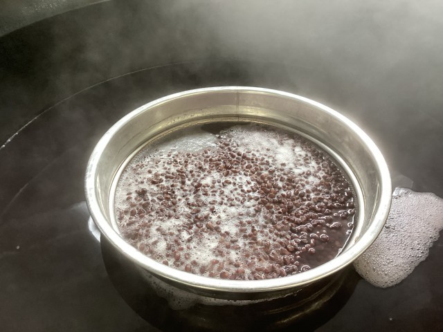 ※写真3枚目は、米ともち米に茹でた小豆と茹で汁を加えたところです。