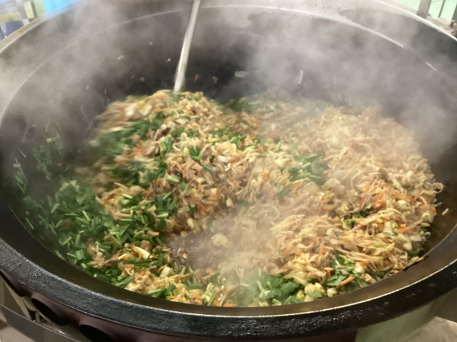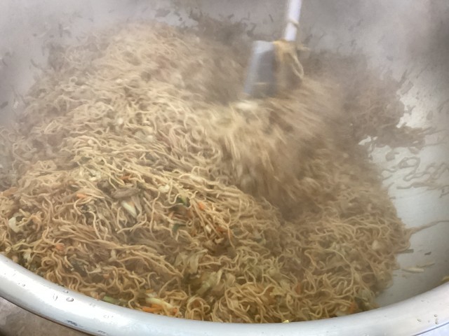 ※写真3枚目は、蒸した中華麺と炒めた具をあわせているところです。