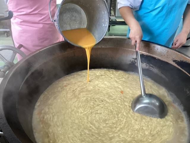 ※写真3枚目は、かきたま汁の卵が綺麗に散るように卵液をそーっと入れいるところです。