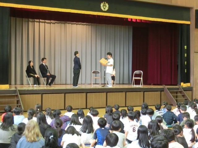 昨年度末で八幡小学校から去られた教職員の皆様をお迎えし、離任式を行いました。子どもたちが思いのこもったお別れの言葉を述べました。離任される先生や主事さん方に、いつまでも手を振り続ける子どもたちが素敵でした。離任された教職員の皆様、どうぞ新しい学校でもお元気でご活躍ください。
