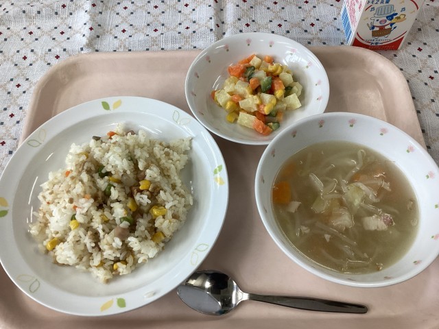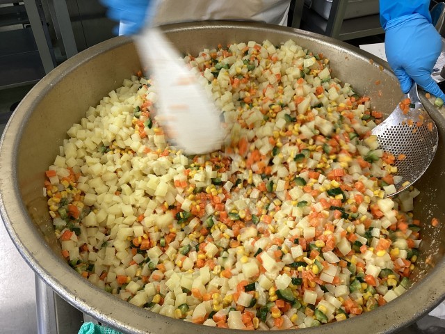 ※写真2枚目は、今日のサラダに入っている食材です。サイコロ状に見えるでしょうか。