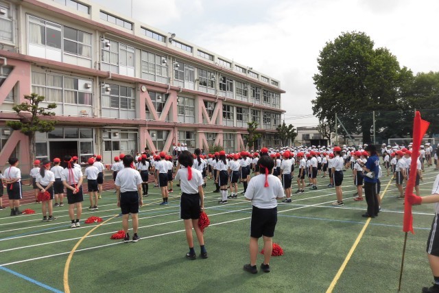 運動会に向けて、全校練習を行いました。今日は開会式のリハーサルです。