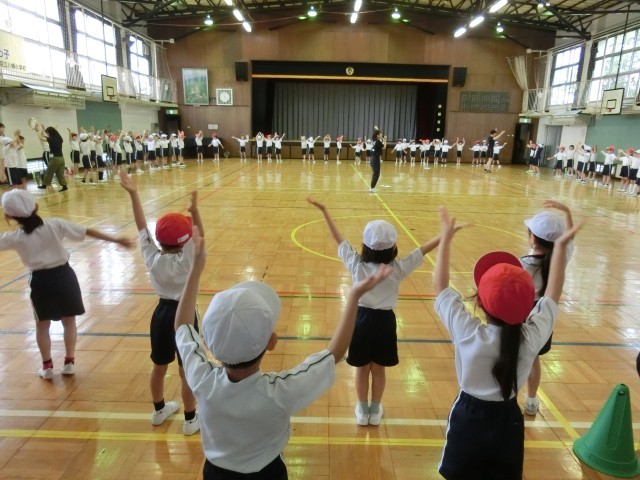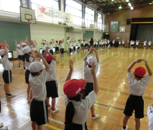 1・2年生の「表現」の練習です。あいにく雨が降り始めたので、体育館で練習です。大きく体を動かしてノリノリで踊っています!楽しみにしていてくださいね。