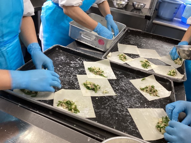 ピーマンチーズ春巻は6年生が5年生の時に野菜が苦手な人にも食べられるメニューとして提案してくれました。