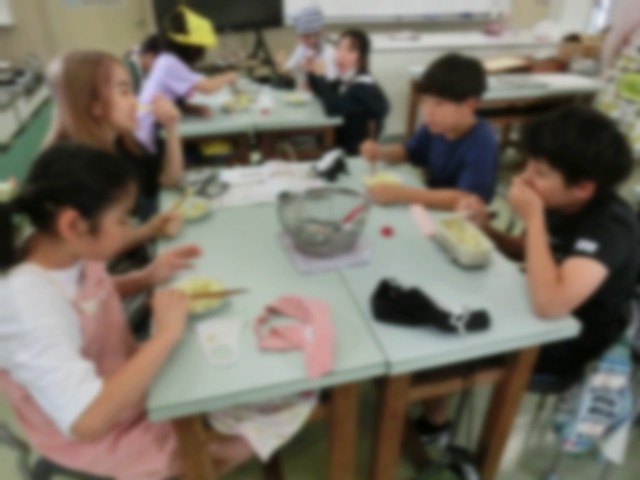 5年生が家庭科の授業で初めての調理実習です。今日はゆでじゃがいもを調理しました。じゃがいもの皮をていねいにむいた後、鍋でゆでました。ほくほくのゆでじゃがいもができあがりました。塩で味付けをして、試食タイムです。とってもおいしそうでした。今回も地域のボランティアの方々がお手伝いに来てくださいました。いつもありがとうございます。