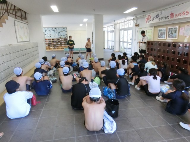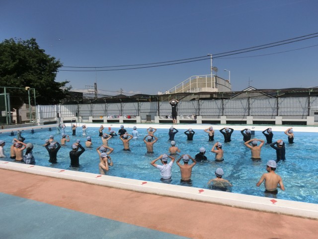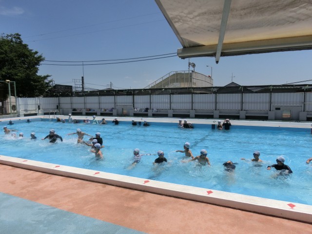令和7年度のプール開きです。安全を第一に、楽しく水泳の学習を行います。体力をつけ、泳力を伸ばし、もしもの時に身を守る力をつけることがめあてです。それぞれの目標に向かって頑張ってほしいです。気温も高くなり、プール日和です。熱中症にも十分に気を付けて取り組みます。