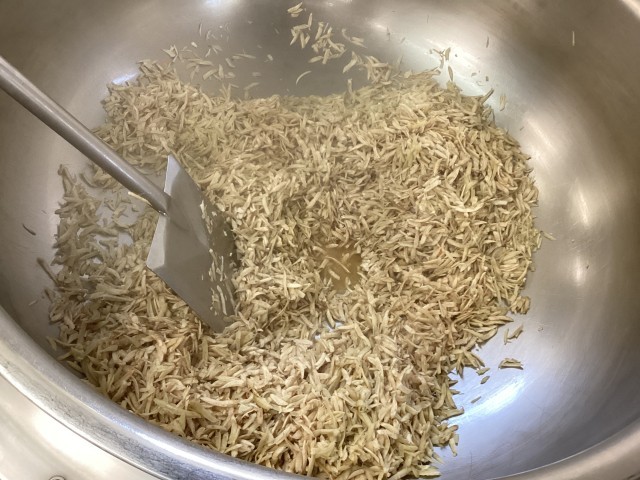 ※写真3枚目は、火が通りにくいごぼうから炒めていくところです。