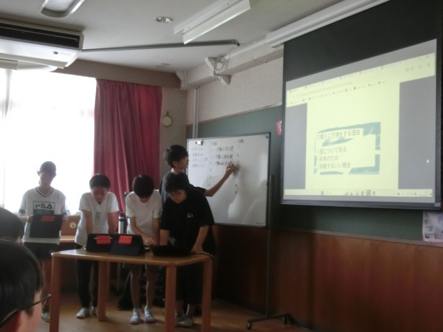 6年生が今年度の挑戦について、グループごとにプレゼンテーションをしました。自分も周りの人も楽しく幸せになることのできる企画を考えています。これからさらに探究をして、企画を実現してほしいと思います。
