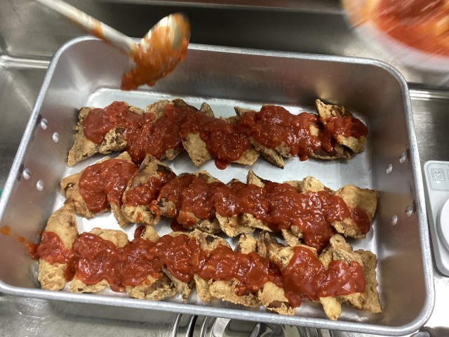 ※写真2枚目は、揚げた魚にチリソースをかけているところです。