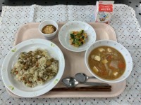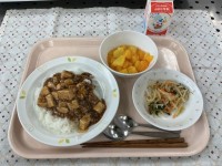 (献立)麻婆豆腐丼中華サラダフルーツカクテル牛乳(メモ)先日、2年生が八幡ファー...