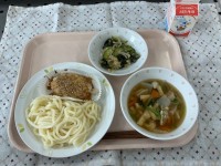 (献立)けんちんうどんじゃこサラダ五平もち牛乳(メモ)五平もちは6年生が交流して...