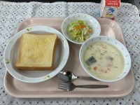 (献立)メープルトーストサーモンチャウダーキャベツサラダ牛乳(メモ)今日はカナダ...