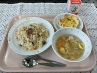 (献立)きのこピラフマカロニ入りスープほうれん草のキッシュ牛乳(メモ)キッシュは...