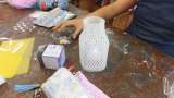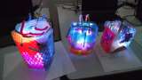 ペットボトルや透明な容器を使ってライトを作っています。 段ボールの中でライトを光...